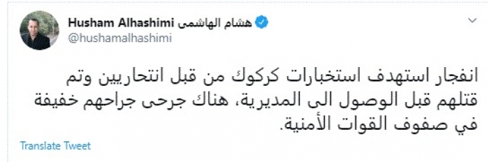 أعلن الباحث السياسي العراقي هشام الهاشمي، عن وقوع انفجار استهدف مديرية الاستخبارات في منطقة القادسية الثانية في كركوك بالعراق.