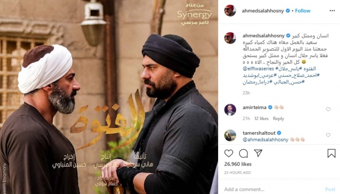 وعلق أحمد صلاح حسني: "إنسان وممثل كبير سعيد بالعمل معاه هناك كمياء كبيرة جمعتنا منذ اليوم الأول للتصوير الحمدالله فعلا ياسر جلال إنسان و ممثل كبير يستحق كل الخير والنجاح".