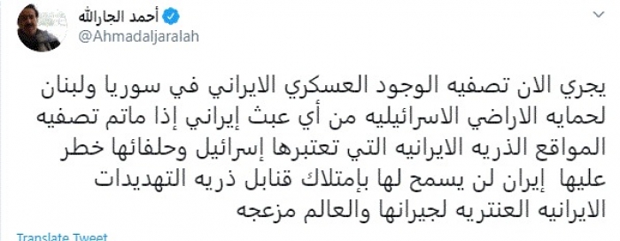 كشف عميد الصحافة الكويتية ورئيس تحرير صحيفة السياسة الكويتية أحمد الجارالله، اليوم، أهمية تصفية الوجود العسكري الإيراني في سوريا ولبنان.