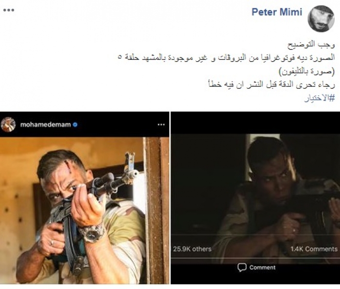 ونشر ميمى، عبر حسابه على فيسبوك، صورتين الأولى الأصلية من العمل المصور والذى تم عرضه فى الحلقة الخامسة، بينما الصورة الأخرى الملتقطة من بروفات التصوير، صحبهما بتعليق: "الصورة ديه فوتوغرافيا من البروڤات وغير موجودة بالمشهد حلقة 5، صورة بالتليفون، رجاء تحرى الدقة قبل النشر".