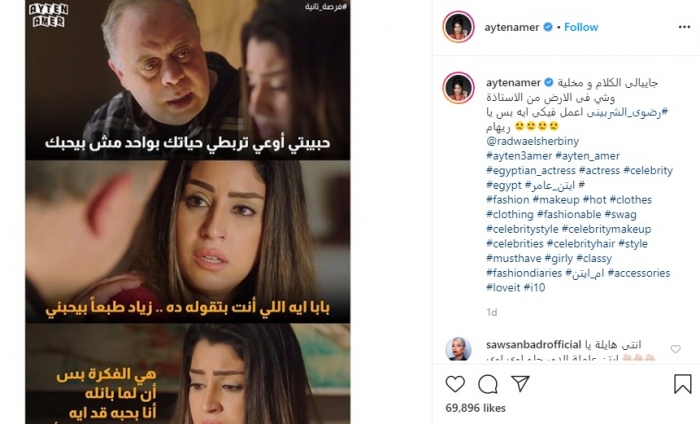 وكتبت آيتن في تعليقها على الصورة "جايبالي الكلام ومخلية وشي فى الأرض من الأستاذة رضوى الشربيني اعمل فيكي ايه بس يا ريهام".