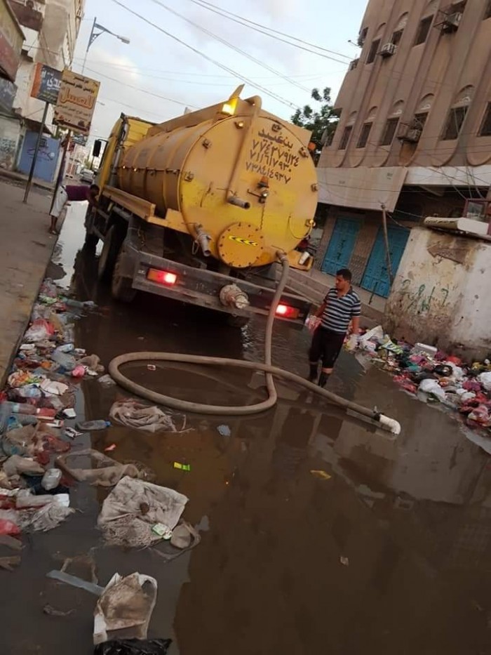 إزالة مياه الصرف ببعض شوارع الشيخ عثمان