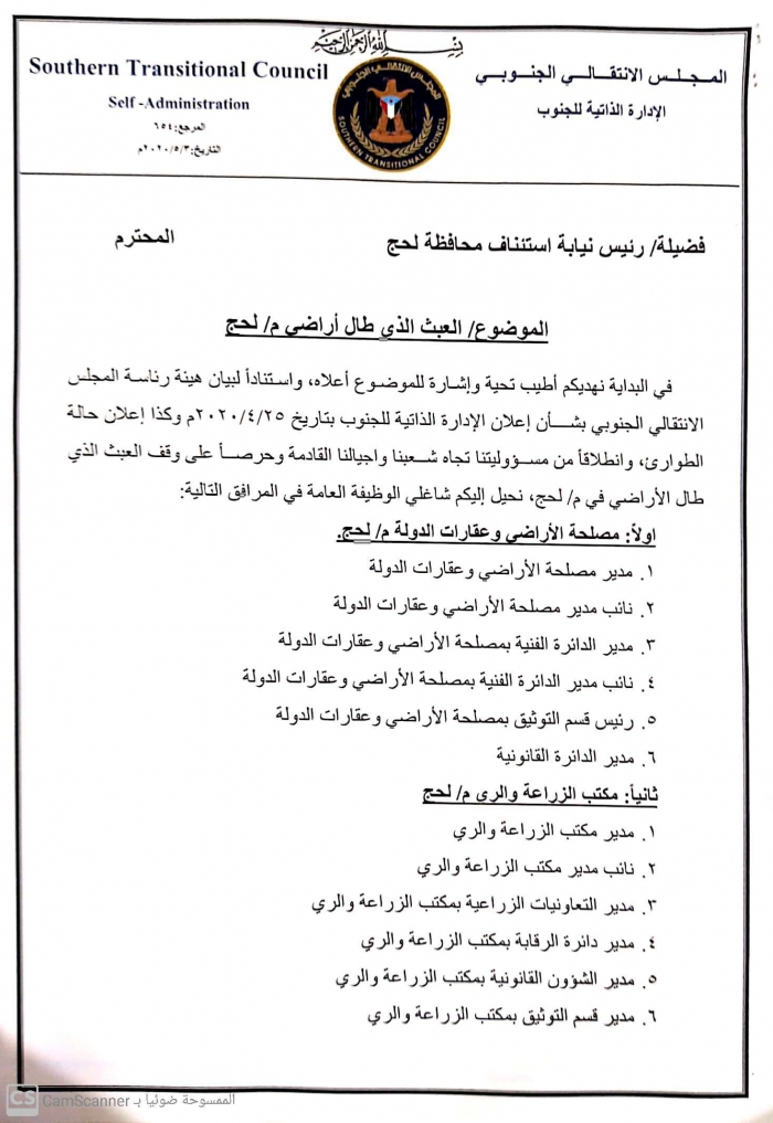 الإدارة الذاتية: إحالة مسؤولين فرطوا بأراضي لحج للنيابة