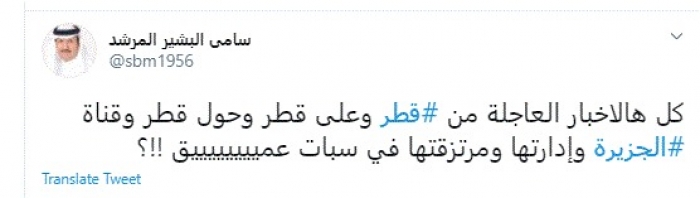 وقال في تغريدة عبر "تويتر" رصدها "المشهد العربي": "كل هالأخبار العاجلة من قطر وعلى قطر وحول قطر وقناة الجزيرة وإدارتها ومرتزقتها في سبات عميق".