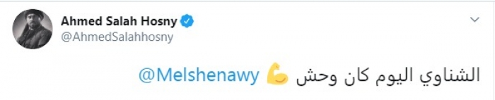 وكتب حسني تغريدة، عبر حسابه الرسمي بموقع "تويتر" :"الشناوي كان وحش".