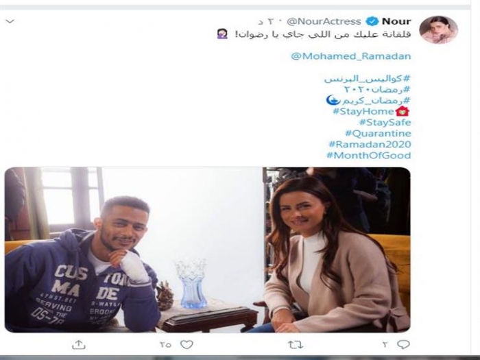 نشرت الفنانة نور عبر حسابها الشخصي بموقع "تويتر"، صورة لها مع الفنان محمد رمضان، من كواليس تصوير مسلسل "البرنس"، بعد عرض الحلقة الحادية عشر من المسلسل.