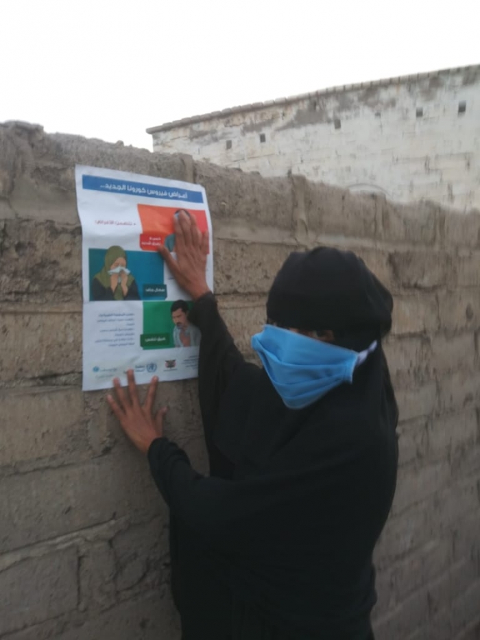وأوضحت أن المعلمات توزعن في الزيدية والجراحى بمحافظة الحديدة، لتوعية الأهالي بخطر تفشي فيروس كورونا.