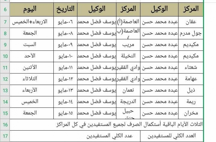وتستمر عملية صرف الحوالات النقدية لدورة أبريل، لمدة عشرة أيام عبر الوكلاء المعتمدين في المديرية.