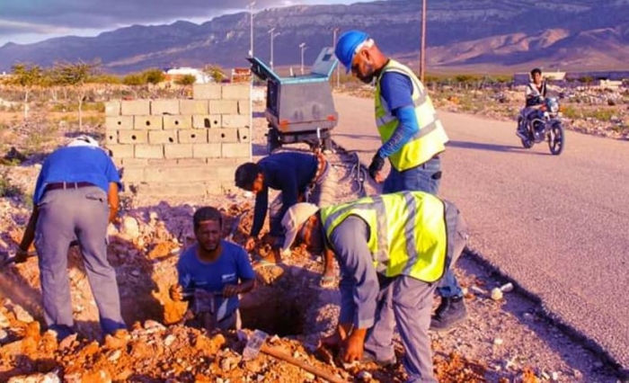 تواصل فرق شركة دكسم باور الهندسية التابعة لمؤسسة الشيخ خليفة بن زايد للأعمال الإنسانية، في محافظة أرخبيل سقطرى، تركيب أعمدة إنارة تعمل بالطاقة الشمسية بمداخل مدينة قلنسية.