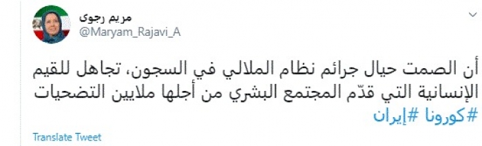 وقالت في تغريدة عبر "تويتر" رصدها "المشهد العربي": "أن الصمت حيال جرائم نظام الملالي في السجون، تجاهل للقيم الإنسانية التي قدّم المجتمع البشري من أجلها ملايين التضحيات".