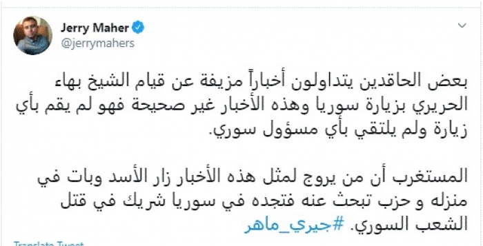 جيري ماهر يكشف حقيقة زيارة بهاء الحريري لسوريا