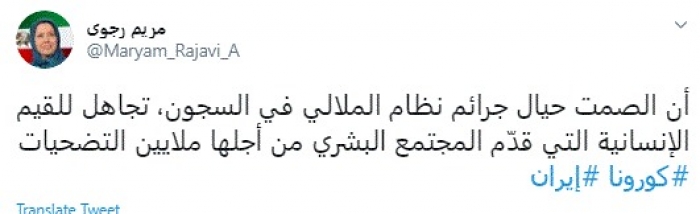 وقالت في تغريدة عبر "تويتر" رصدها "المشهد العربي": "أن الصمت حيال جرائم نظام الملالي في السجون، تجاهل للقيم الإنسانية التي قدّم المجتمع البشري من أجلها ملايين التضحيات".