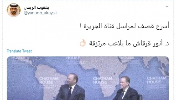 وقال في تغريدة عبر "تويتر" رصدها "المشهد العربي": "أسرع قصف لمراسل قناة الجزيرة ! د. أنور قرقاش ما يلاعب مرتزقة".