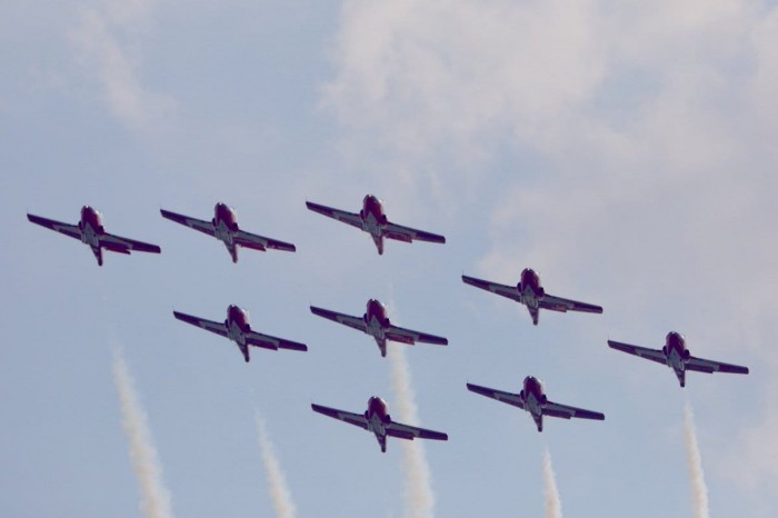 وبدأ فريق ”سنو بيردز“، الذي يتكون من تسع طائرات تترك دخانا أبيض في السماء، جولته في نوفا سكوشا، في إطار مهمته لتنفيذ عروض جوية فوق المدن الرئيسة في البلاد على ارتفاع منخفض ومن الشرق إلى الغرب.