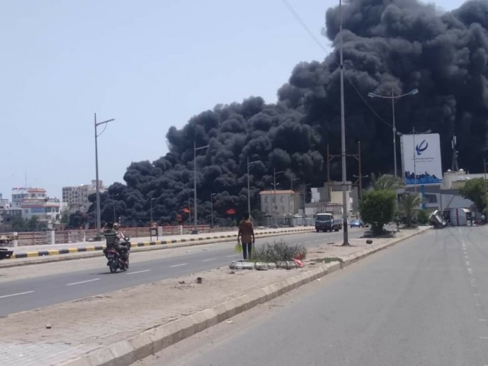 غطى الدخان الأسود سماء مديرية المنصورة، في حريق اندلع، منذ قليل، بخط ريمي بالعاصمة عدن.