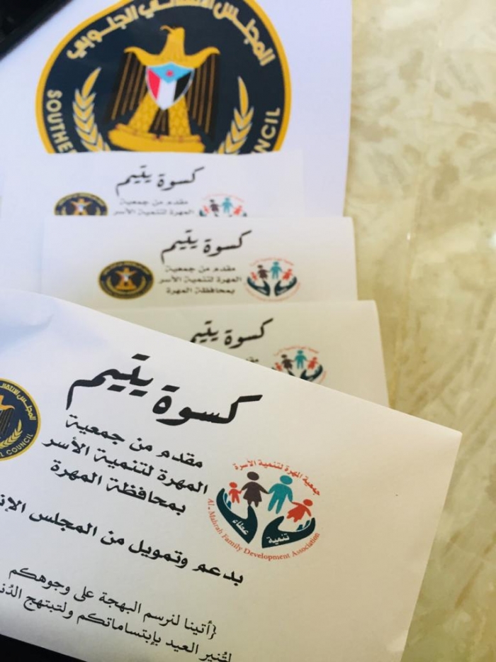 بدعم الانتقالي.. توزيع كسوة العيد على أطفال المهرة