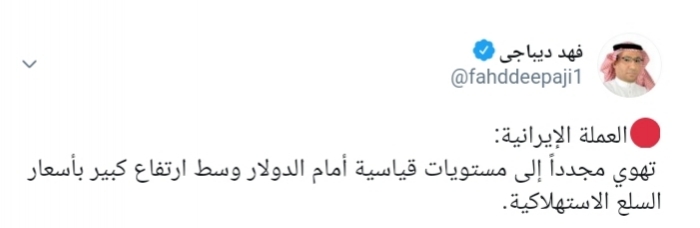 وكتب ديباجي عبر تغريدة له على "تويتر" رصدها " المشهد العربي":"العملة الإيرانية تهوي مجدداً إلى مستويات قياسية أمام الدولار وسط ارتفاع كبير بأسعار السلع الاستهلاكية".