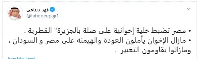 ديباجي يُعلق على ضبط خلية إخوانية بمصر على صلة بالجزيرة