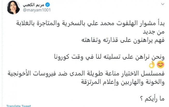 علقت الكاتبة والإعلامية مريم الكعبي، اليوم، على عودة ظهور المقاول محمد علي للهجوم على الدولة المصرية مُستغلاً أزمة وباء كورونا.