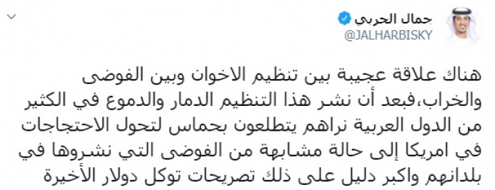 الحربي: علاقة وثيقة بين الإخوان والفوضى والخراب