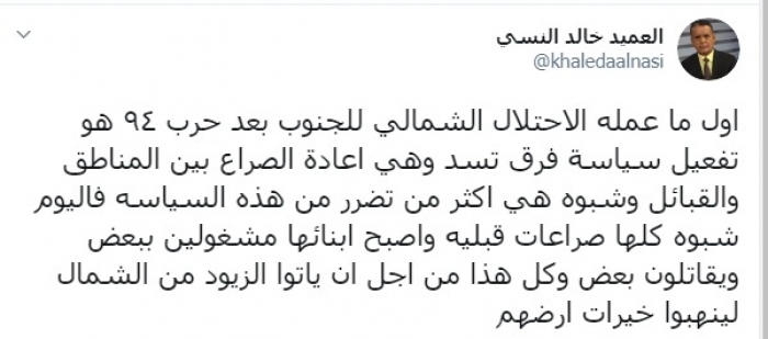 النسي: هذا أول ما فعله الاحتلال الشمالي للجنوب