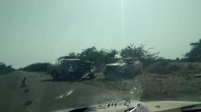 استهدف الكمين، بحسب مصادر ميدانية، طقمين عسكريين وسيارة إسعاف تابعة للميلشيا الإخوانية في منطقة الجرة شرق مديرية المحفد.