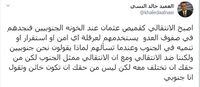 النسي: هذا ما يريده خونة الجنوب من الانتقالي