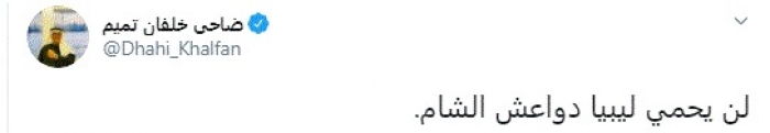 وقال في تغريدة عبر "تويتر" رصدها "المشهد العربي": "لن يحمي ليبيا دواعش الشام".