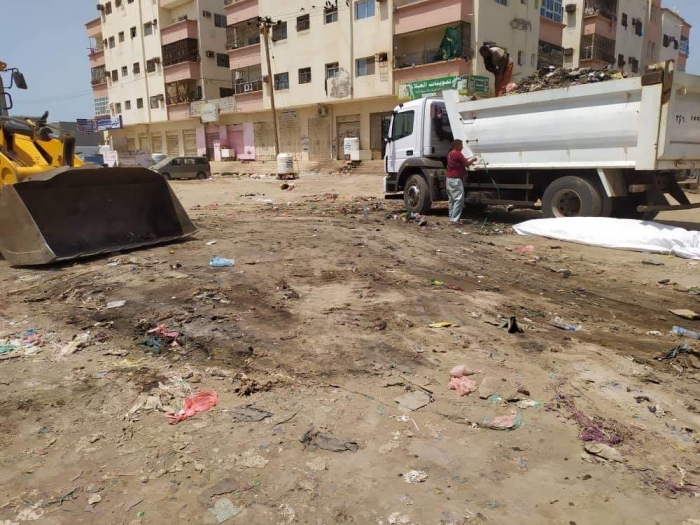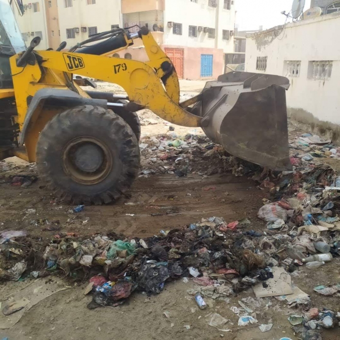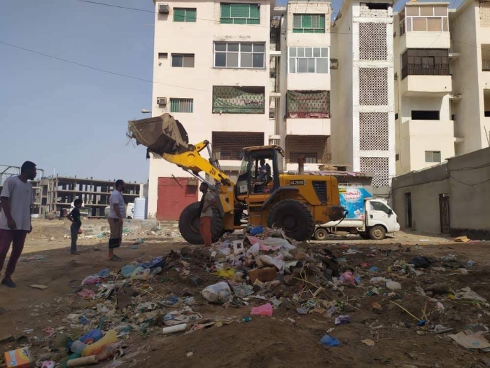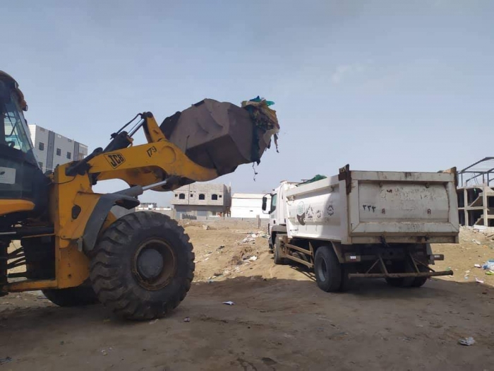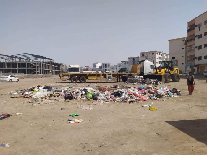 رفعت فرق نظافة "عدن أجمل" منذ أمس الجمعة، مخلفات القمامة المتكدسة في الممدارة.