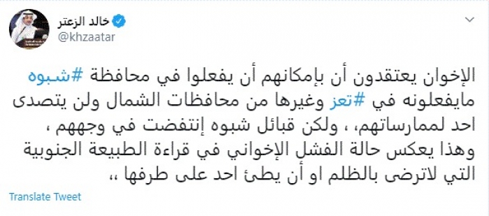الزعتر يُعلق على انتفاضة قبائل شبوة ضد مليشيا الإخوان