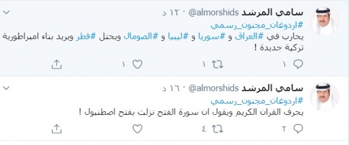 وكتب عبر تغريدة له على "تويتر" رصدها " المشهد العربي": "يحرف القرآن الكريم ويقول إن سورة الفتح نزلت بفتح اسطنبول".