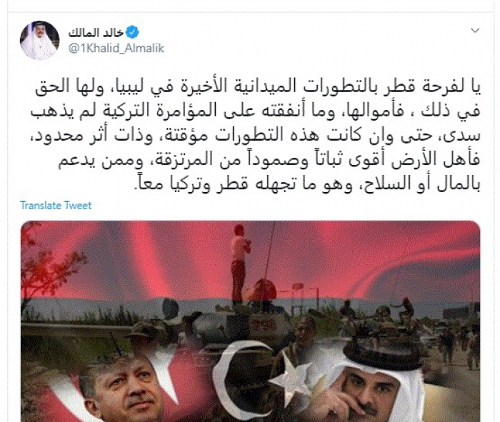 كاتب سعودي لـ قطر وتركيا: أهل ليبيا أقوى من المرتزقة وداعميهم