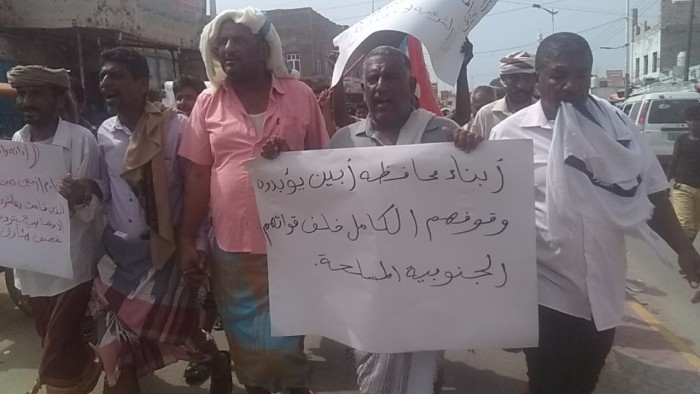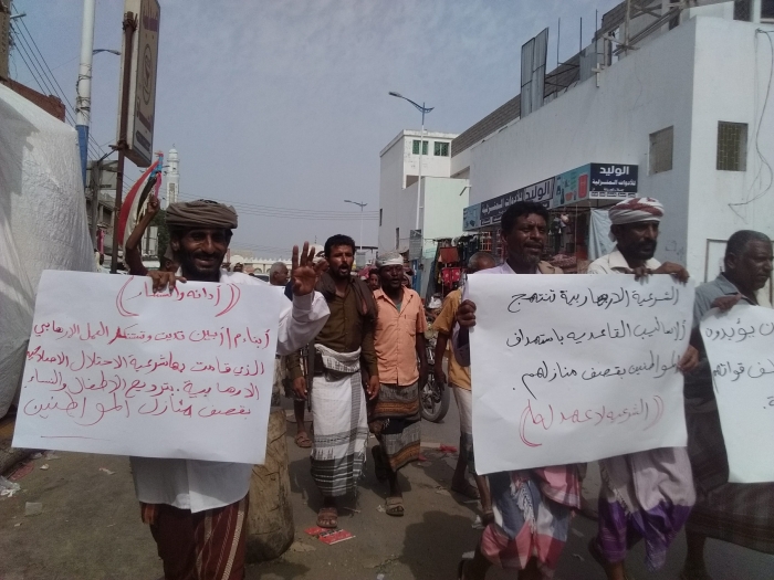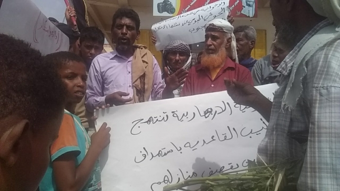 ورفع المتظاهرون لافتات كتبوا عليها عبارات التنديد والاستنكار لجرائم المليشيا الإخوانية الإرهابية، وطالبوا القوات المسلحة الجنوبية بحمايتهم.