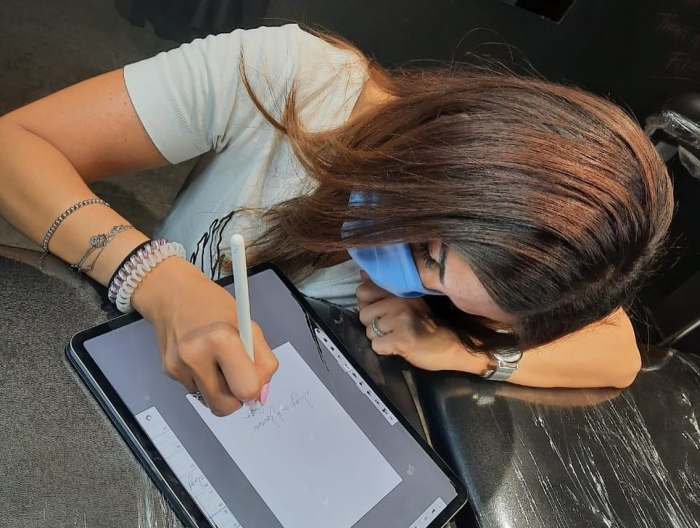 وعلق "فهمي"، على الصور، قائلًا: "دانيا دائمًا وإلى الأبد، بخطها وأنا وضعته على جسدي".
