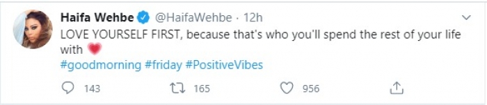 وكتبت هيفاء: "حب نفسك أولاً.. لأنك أنت الشخص الذي ستقضي بقية حياتك معه".