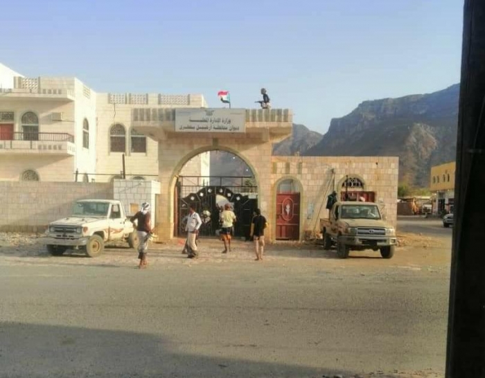 رفع أفراد القوات المسلحة الجنوبية، مساء اليوم الجمعة، علم الجنوب أعلى مبنى المحافظة، في شارع 30 وسط حديبو، في سقطرى.