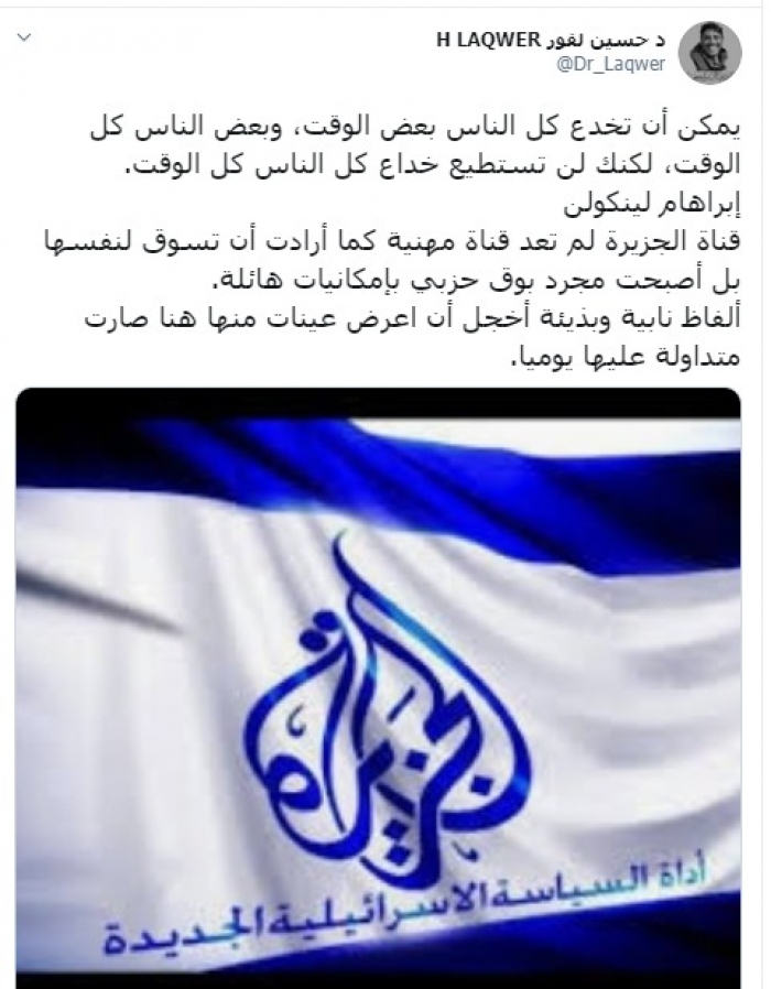 وأضاف: "قناة الجزيرة لم تعد قناة مهنية كما أرادت أن تسوق لنفسها بل أصبحت مجرد بوق حزبي بإمكانيات هائلة".