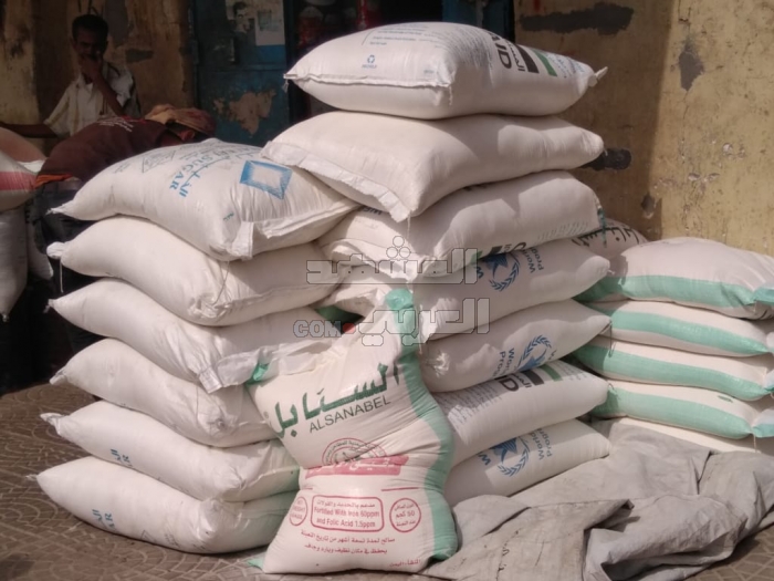 مساعدات الغذاء العالمي تُباع بأسواق لحج (صور)