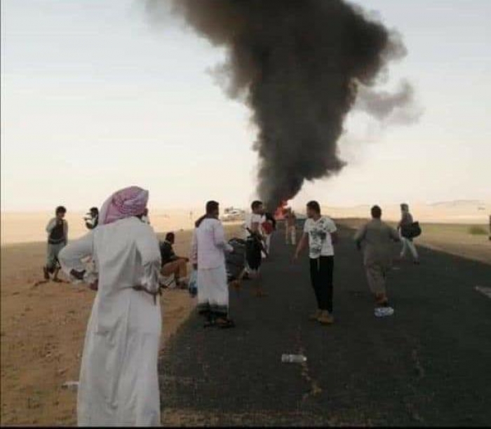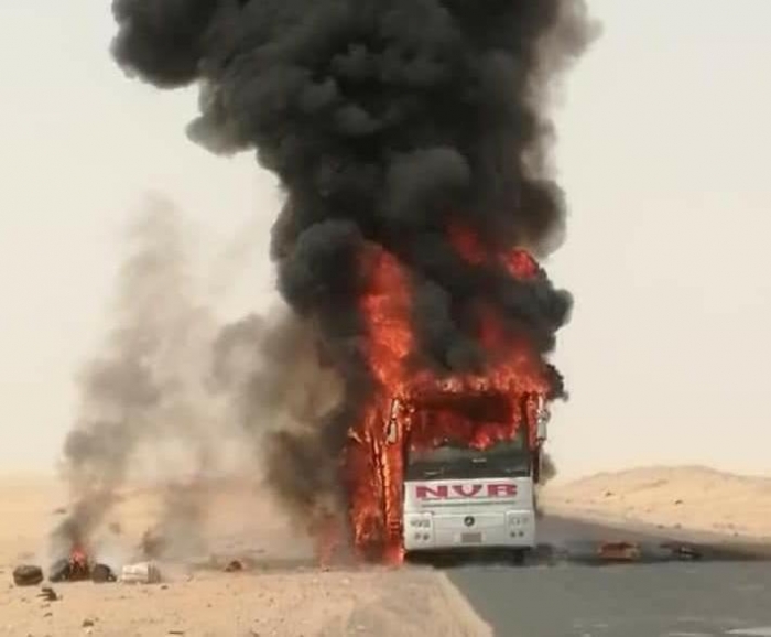 نشب حريق في حافلة نقل ركاب، عصر اليوم الأحد، في صحراء العبر بالخط الواصل بين شبوة والوديعة في محافظة حضرموت.