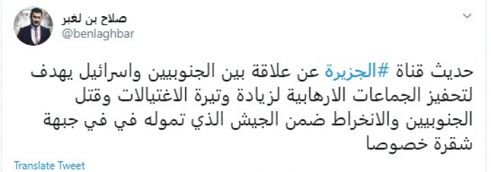 بن لغبر يكشف الأهداف الخبيثة لحديث الجزيرة عن علاقة الجنوبيين بإسرائيل