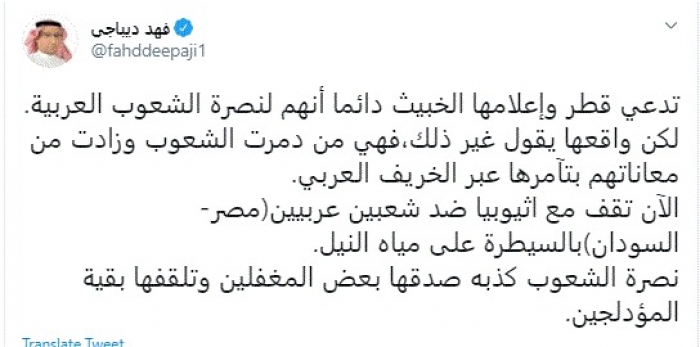 ديباجي: حديث قطر وإعلامها عن نصرة الشعوب مجرد كذبة