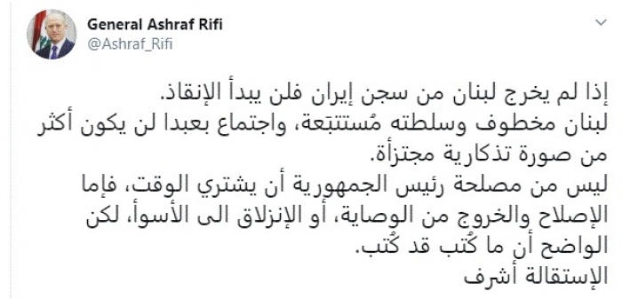 حذر الوزير اللبناني السابق اللواء أشرف ريفي، اليوم، من استمرار سيطرة إيران على القرار اللبناني.