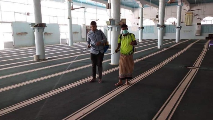 تستهدف الحملة رش وتعقيم المساجد في مدينة المكلا بمشاركة فرق تطوعية من الشباب.