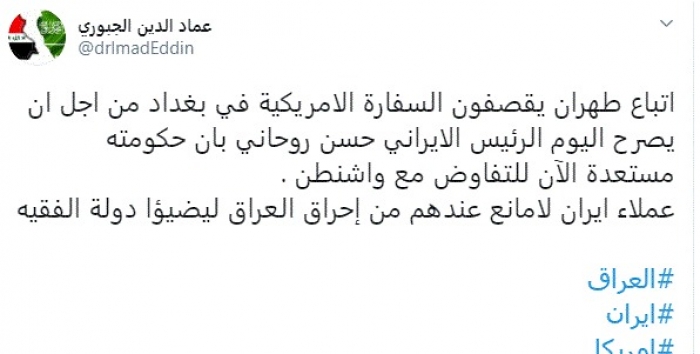 فتح المحلل السياسي العراقي عماد الدين الجبوري، اليوم، النار على عملاء إيران في العراق.