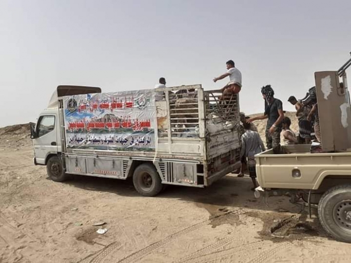 قافلة غذائية لمرابطي أبين من أهالي يافع (صور)