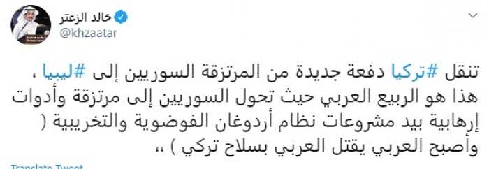 الزعتر يُعلق على نقل تركيا لدفعة جديدة من المرتزقة لليبيا