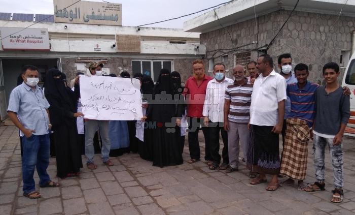 نظمت إدارة وموظفو مستشفى الوهط في مديرية تبن، بمحافظة لحج، اليوم الأحد، وقفة احتجاجية بعد اعتداء مسلح على المستشفى وكوادره.