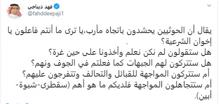 ديباجي لـ الشرعية والإخوان: ماذا ستفعلون بعد حشد الحوثي تجاه مأرب؟