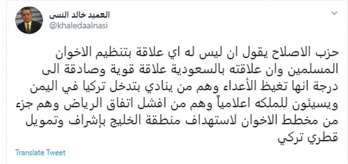 النسي: حزب الإصلاح جزءً من مُخطط الإخوان لاستهداف الخليج