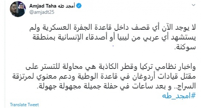 أمجد طه يكشف حقيقة قصف تركيا لقاعدة الجفرة الليبية